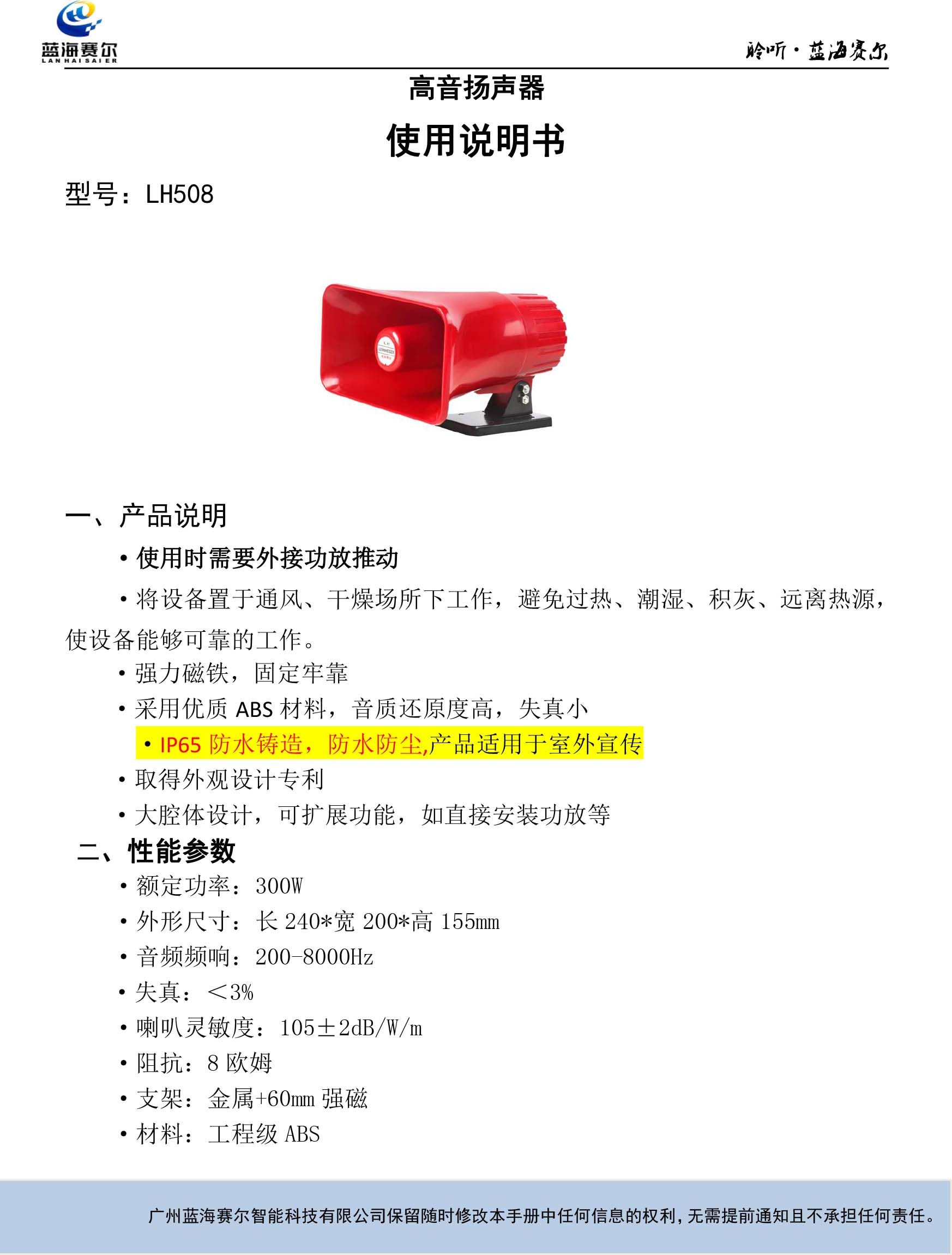 高音扬声器说明书 LH508