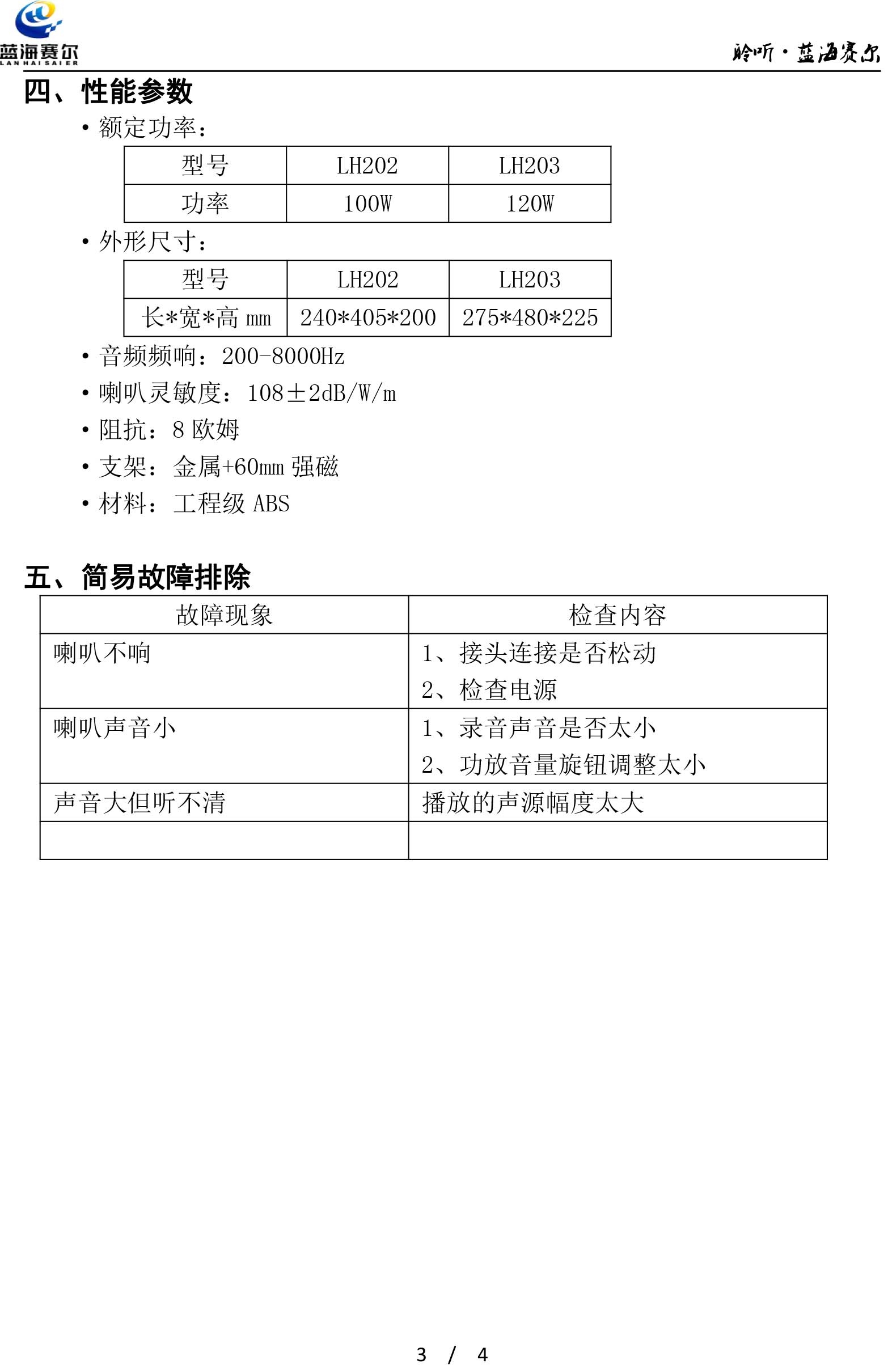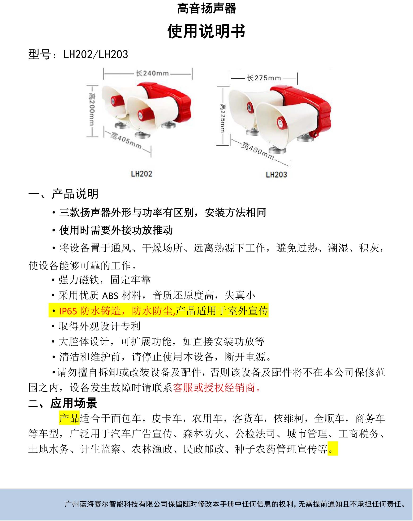 - 【下一篇】:高音扬声器说明书LH302/LH303