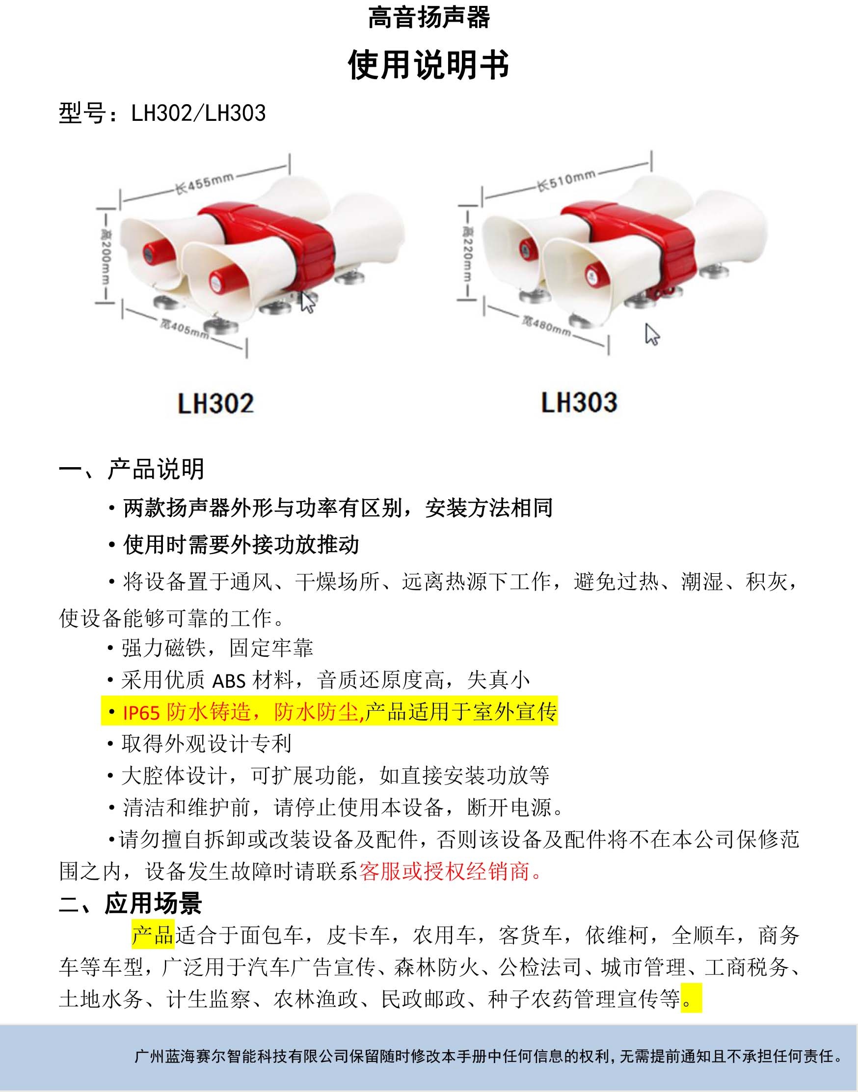 - 【上一篇】:高音扬声器说明书LH202/LH203