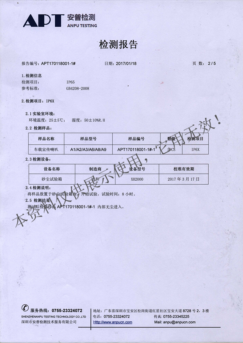 车载宣传喇叭A1、A2、A3、A6、A8、A9检测报告