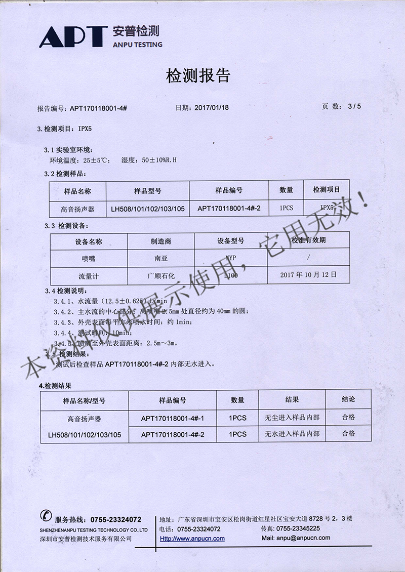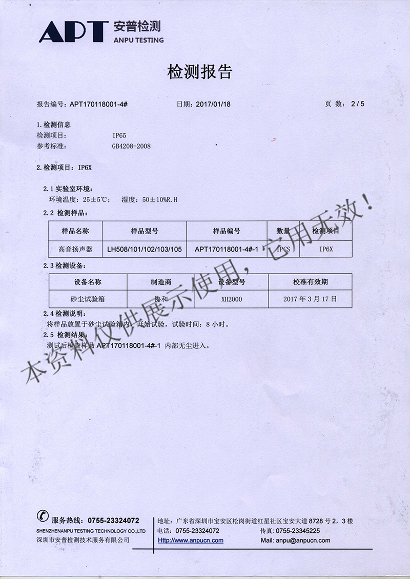 - 【上一篇】:高音扬声器LH300、301、302检测报告