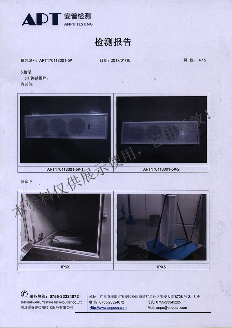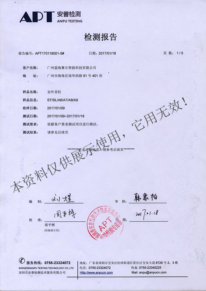 室外音柱ST、SL、A6、A7、A8、A9检测报告